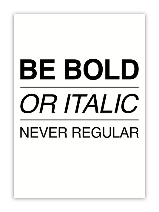 BE BOLD - OR ITALIC - NEVER REGULAR POSTER