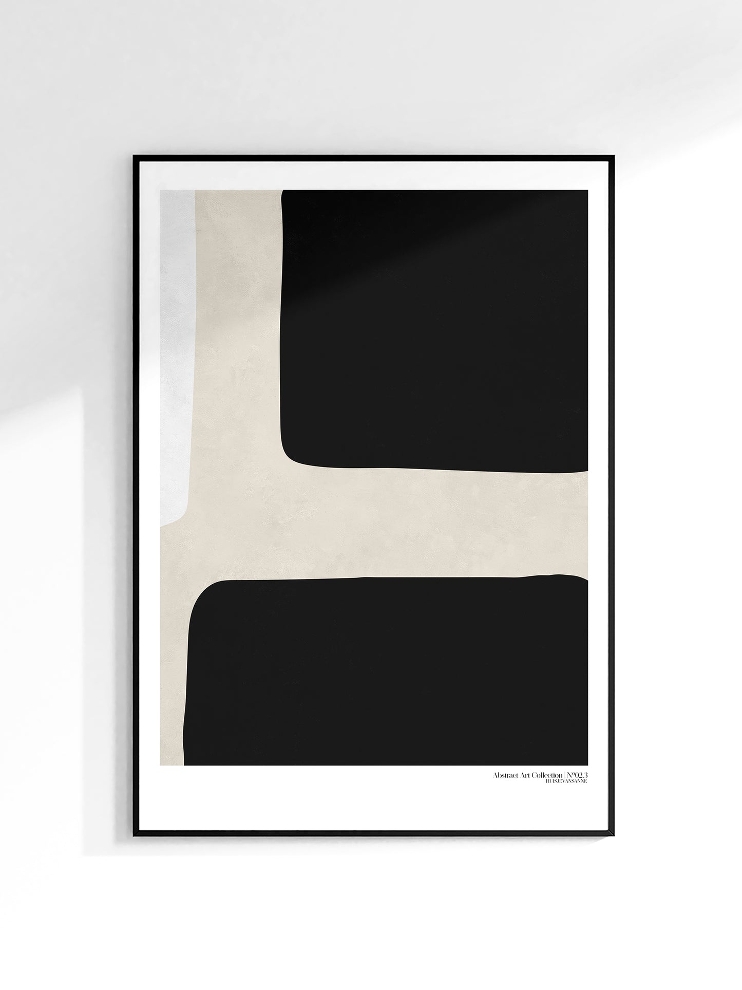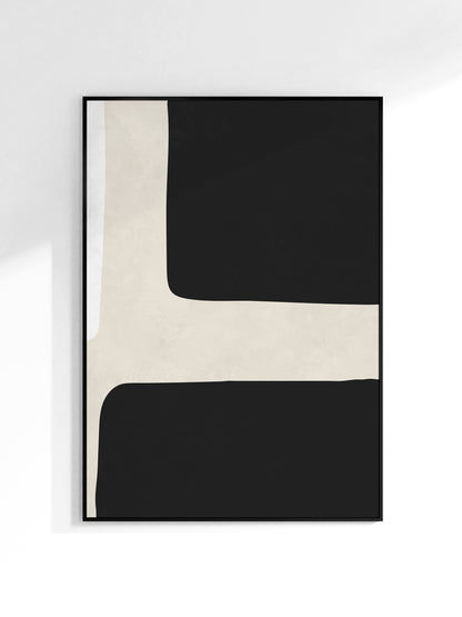 Bringen Sie mit diesem geometrischen Poster einen modernen Touch in Ihr Zuhause. Diese grafische Illustration hat einen schönen beigen Hintergrund, kombiniert mit schwarzen Formen. Die perfekte Wanddekoration!