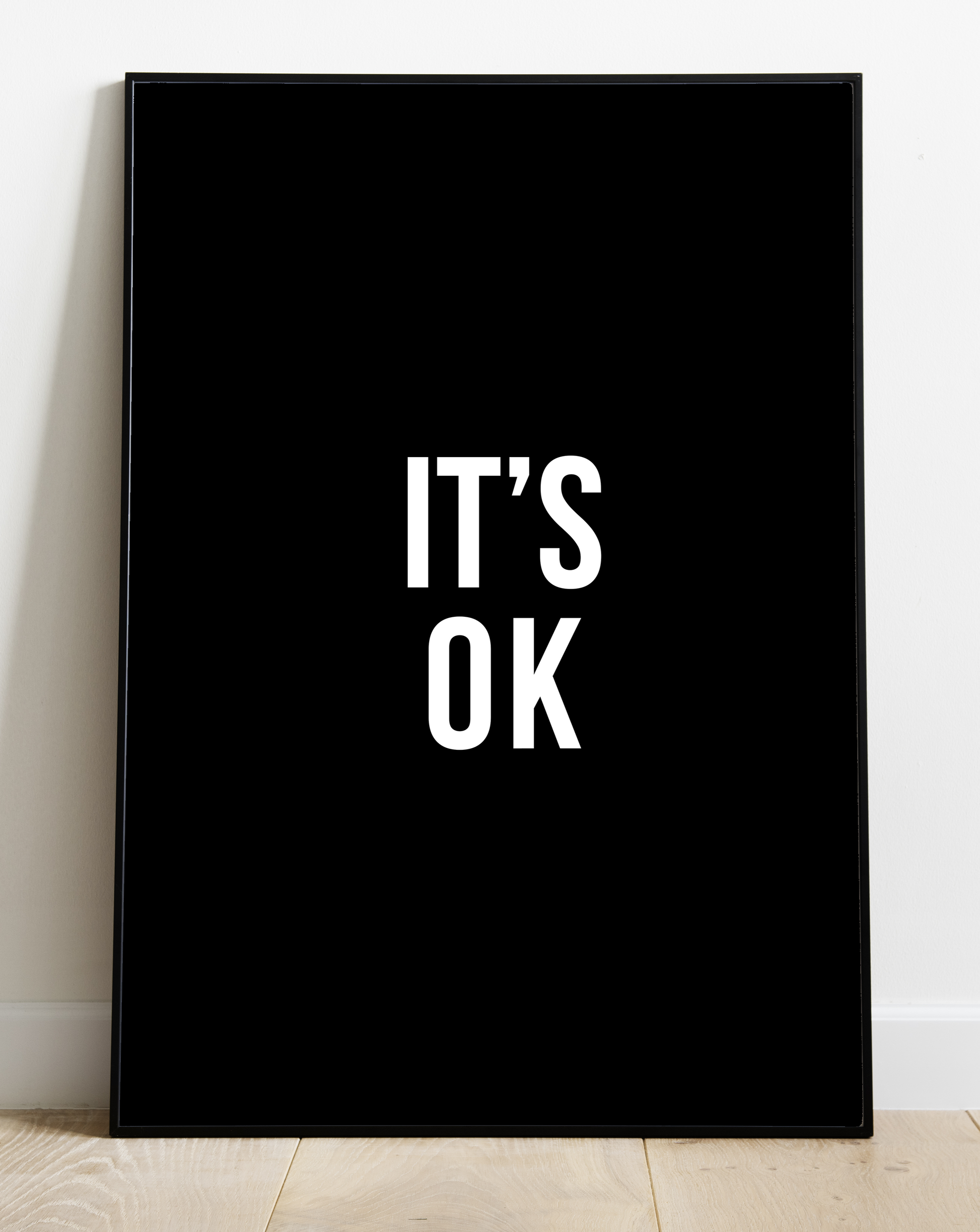 Leuk je huis op met deze te gekke zwart witte grafische poster, met de tekst It's ok. De tekstposter heeft een mooie dik font en is ideaal te combineren met andere posters. Modern en trendy voor een zwart-wit Scandinavisch interieur. Hang de poster op aan de muur of zet hem stoer op de grond.
