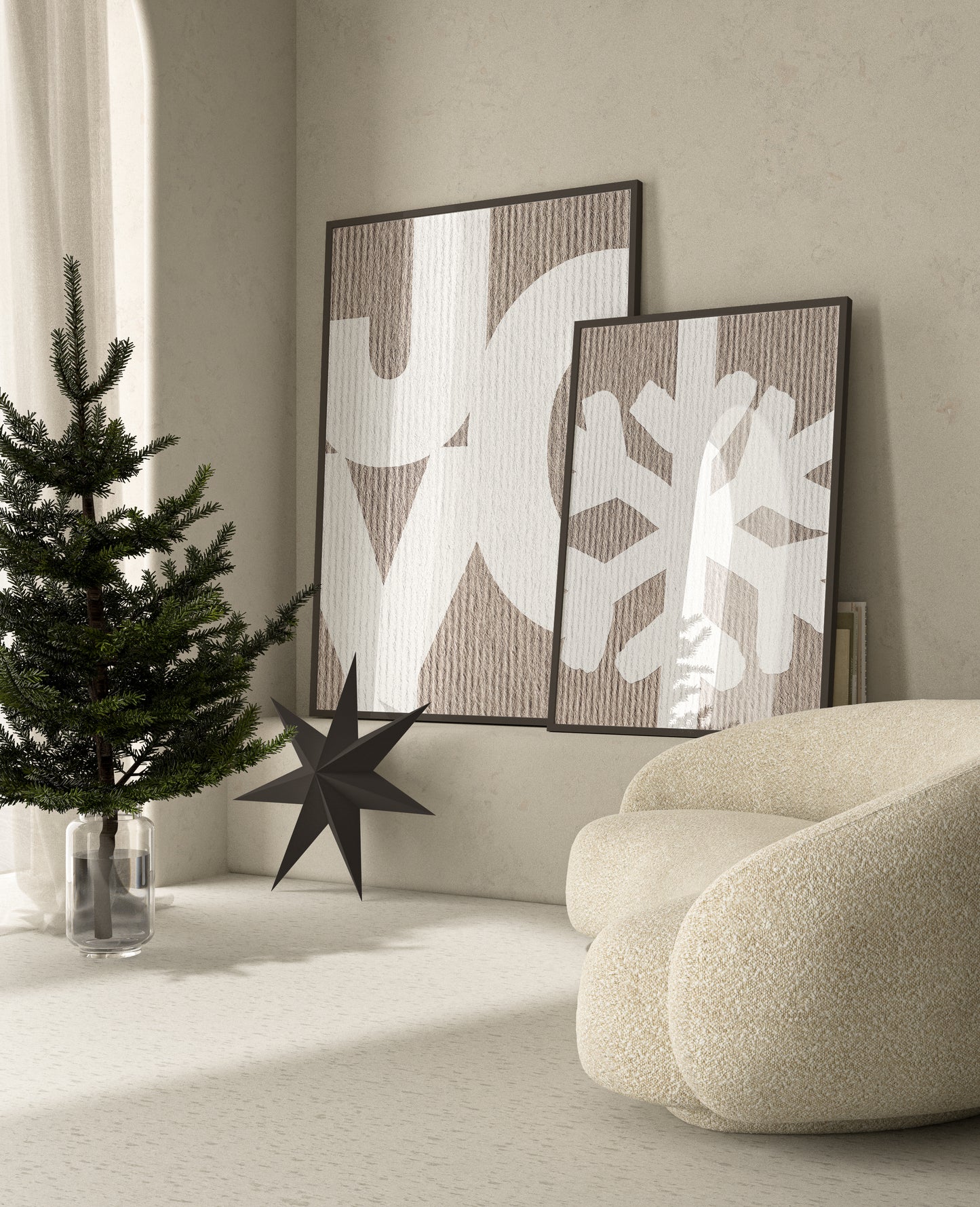 Met een verfijnde mix van minimalistisch design en elegante eenvoud, brengen deze prachtige posters een vleugje feestelijke Kerstsfeer, zonder afbreuk te doen aan de verfijning van je interieur. Elk ontwerp is samengesteld om de essentie van Kerstmis vast te leggen zonder overweldigend te zijn. De perfecte Kerst decoratie voor elk modern, minimalistisch of Japandi interieur.